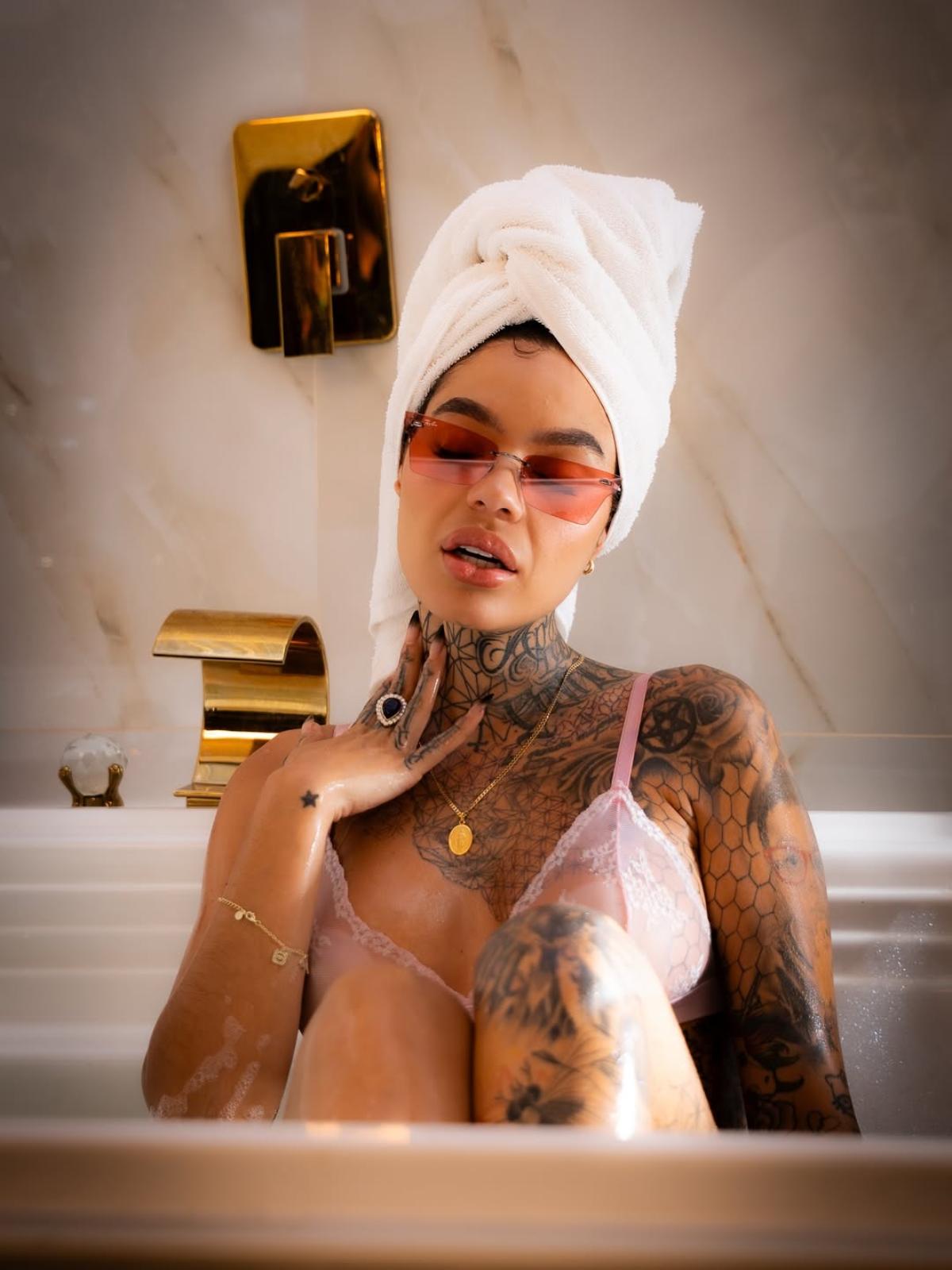 Su elección de vestuario y maquillaje — estilizados, sugerentes pero controlados — reflejan que sabe cómo usar su imagen para captar audiencia.