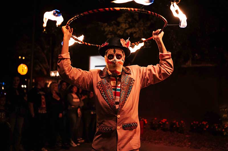 La gastronomía es otro de los protagonistas. Entre aromas de copal y pan recién horneado, el público podrá disfrutar desde chamorro, tacos de arrachera o pastor, hasta bebidas típicas como tejuino o chocolate caliente, y postres tradicionales como pan de muerto y calaveritas de chocolate o dulce. Todo mientras un mariachi en vivo acompaña la velada.