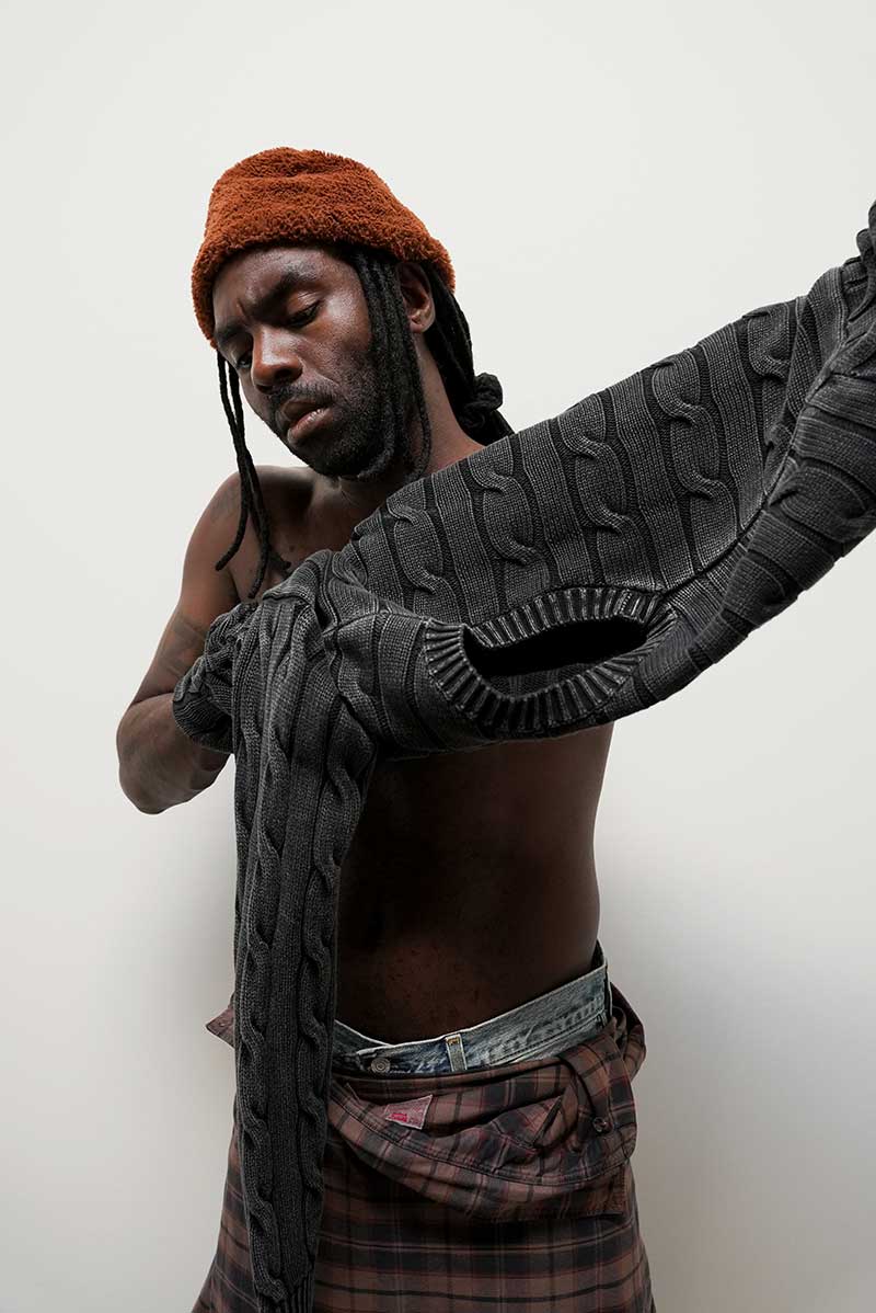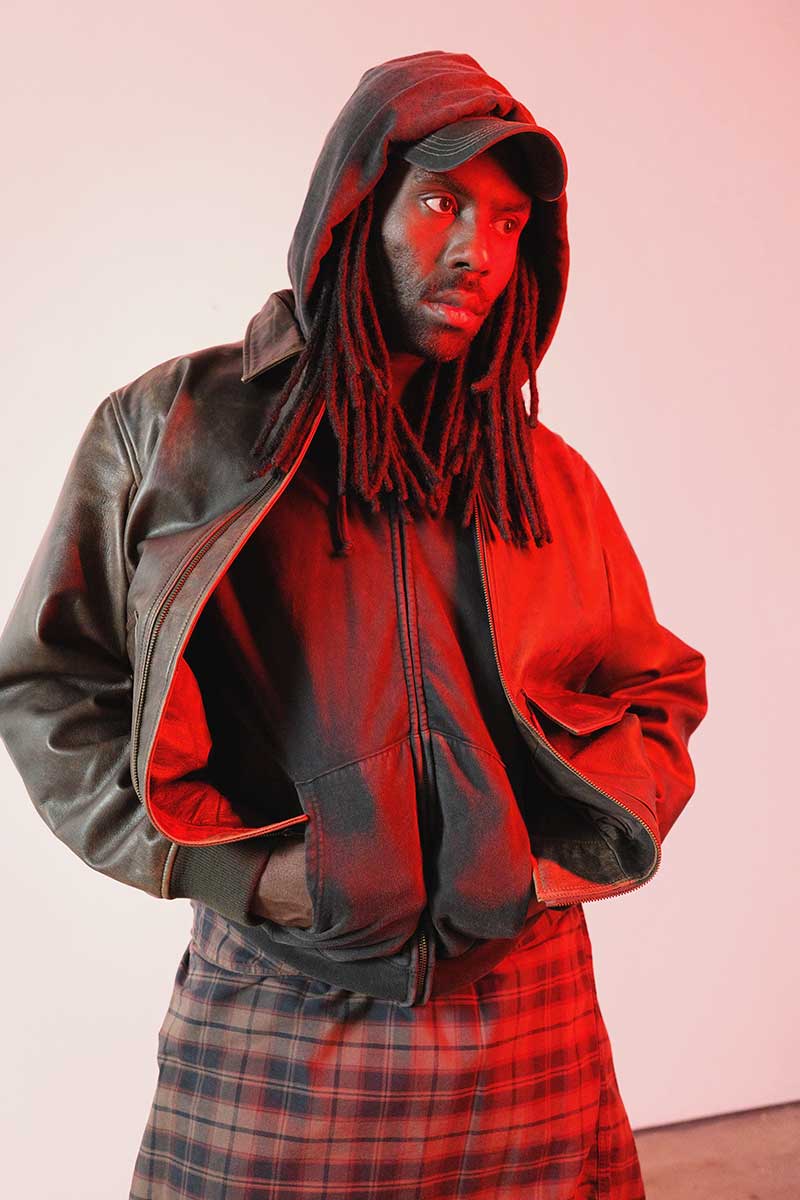 La campaña muestra a Hynes jugando con capas y texturas: una Clayton Leather Aviator sobre la Hayes Boxy Full-Zip Hoodie, el clásico Authentic Button Down usado de manera poco convencional, y el 578@ Baggy mezclado con acentos preppy. Entre ensayos musicales y escenarios callejeros, incluso con un violonchelo en mano, el artista refleja la esencia de un estilo que se construye desde la contradicción.