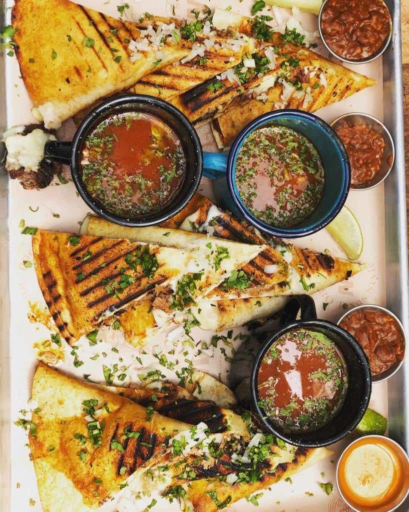 Las Quesabirrias de Brisket, fusionando la tradición mexicana con el brisket texano, son un best seller que no puedes dejar de probar.
