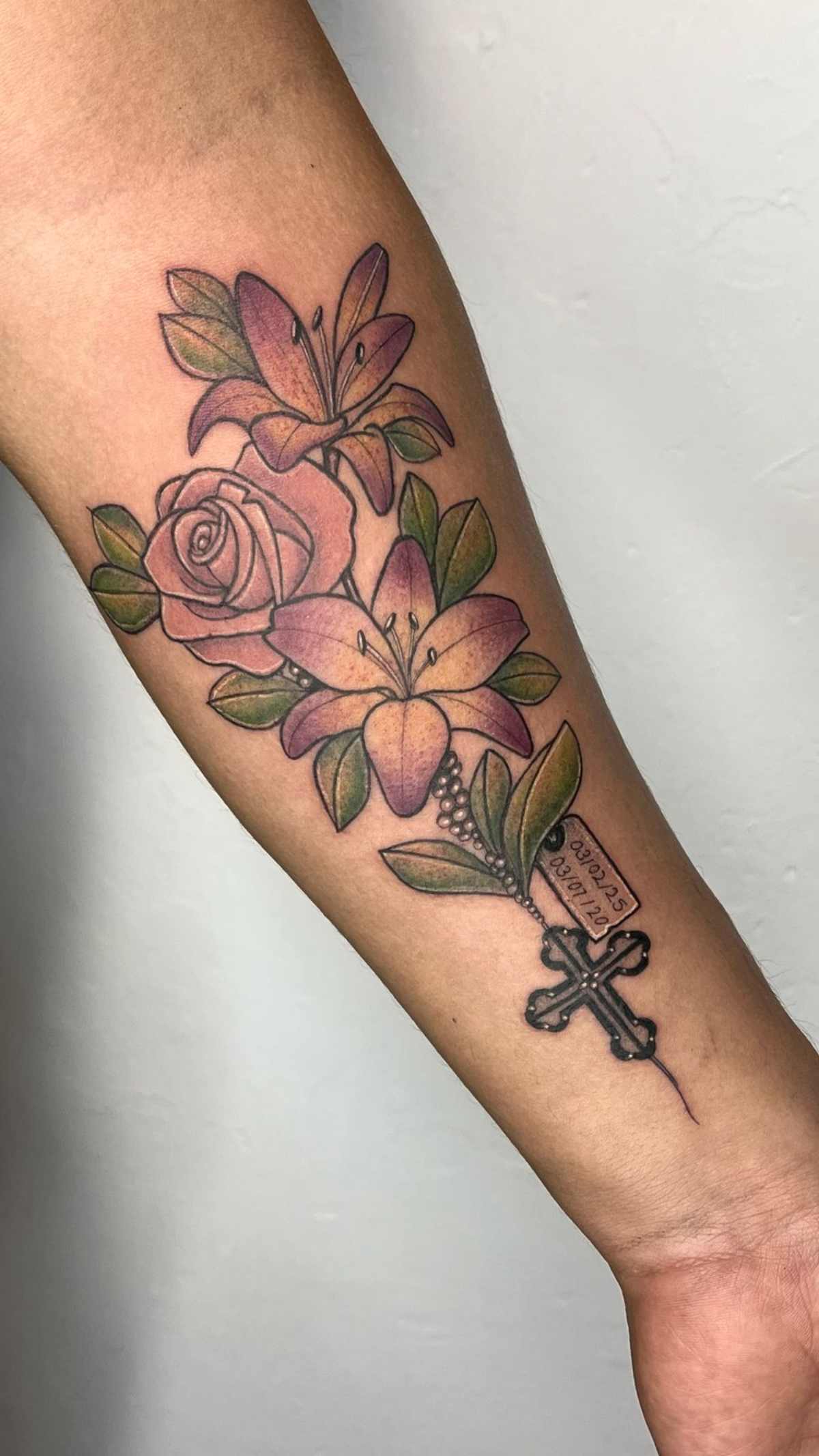 —Me gusta mucho hacer flores, creo que es lo que más disfruto. Después vienen los animales o cosas decorativas, como frasquitos con flores u ornamentos. Siempre intento meter algún detalle botánico, aunque no siempre se puede. Pero sí, me encanta ese tipo de gráfica. Me gusta mucho la naturaleza. Además, las flores nunca pasan de moda y se adaptan orgánicamente a cualquier parte del cuerpo. Son muy nobles.